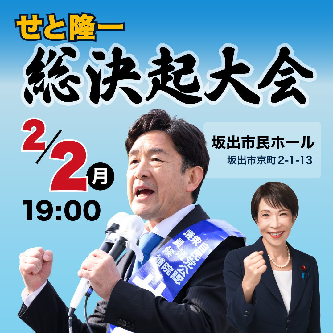 明日(2月2日)19時、坂出市民ホールで総決起大会を開催します!